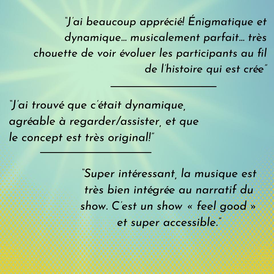 Liz Chan, Fabien Deschenes, Mylรจne Robillard, OโConnor Moving and all the knowing and non-knowing volunteers who came and listened and watched and played and jamed with us up on stage.
